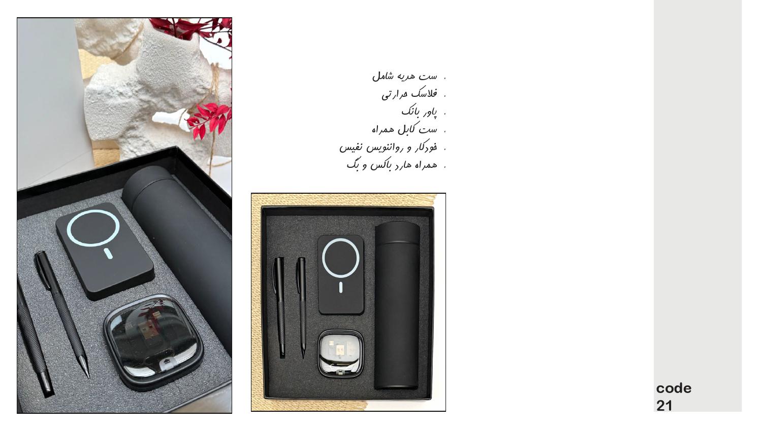 • اقلام همراه: فلاسک حرارتی پاوربانک ست کابل همراه خودکار و روان نویس نفیس