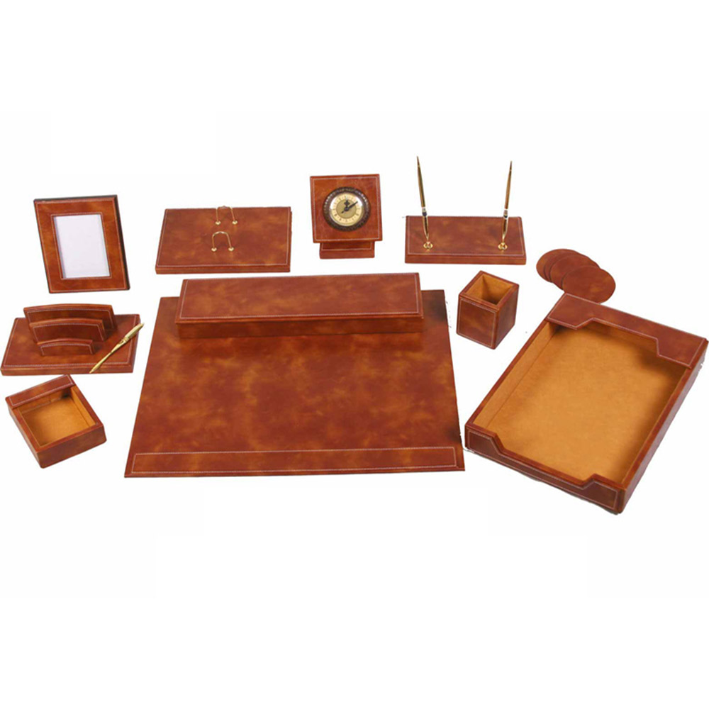 ست لوازم اداری رومیزی چرمی 13 تیکه در دو رنگ مشکی و قهوهای